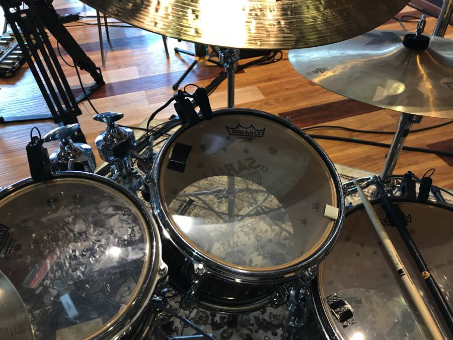 另外还有一个小插曲呢,就是大家可以发现鼓组的照片上没有鼓挡板,可是在文章里开头的照片却有鼓挡板。这是因为在排练的时候,一开始虽然有要求将挡板给架上,可碍于镜头里不是很美观,所以被迫作罢。可是在两天的排练之下,我发现鼓的串音很是影响到整体的音质,一来是李剑青唱法的关系,我称为内敛唱法,唱歌音量不能够很大,不然就会失去他那独特的特质,所以话放必须增益到某个程度才能有好的声音。可是这样一来虽然鼓是在李剑青的前方,可是间距又不是很远,所以串音程度很是严重。再来就是李宗盛乐队的鼓组就在他身后,这样大哥的麦克风刚好正对鼓组,因为距离很近,所以串音也特别的厉害。经过多方面再沟通,终于在直播当天获得首肯,赶紧将鼓挡板架上,紧接着排练重新做各种调试,最后我终于释怀了!哈哈哈,直播前两天的排练着实让我伤透脑筋,不晓得该怎么解决串音问题。