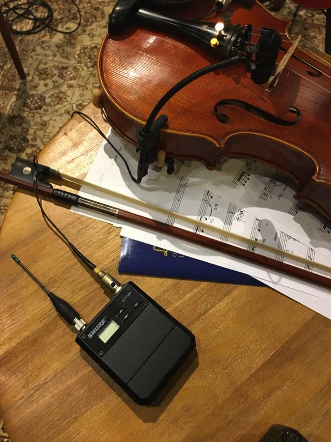 另外还有一样乐器使用了Axient无线传输系统,那就是剑青的小提琴,使用了DPA 4099v配上Shure AXT-100无线发射机腰包,音质上的表现是那么的完美。