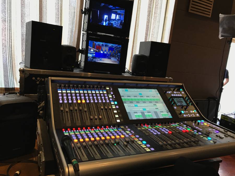 首先就调音台来说,那当然得用上目前业界里的超级调音台啦!OB调音台用的是拥有Super Analog话放的Solid State Logic SSL Live L500 Plus,Monitor调音台用的是DIGICO SD5。