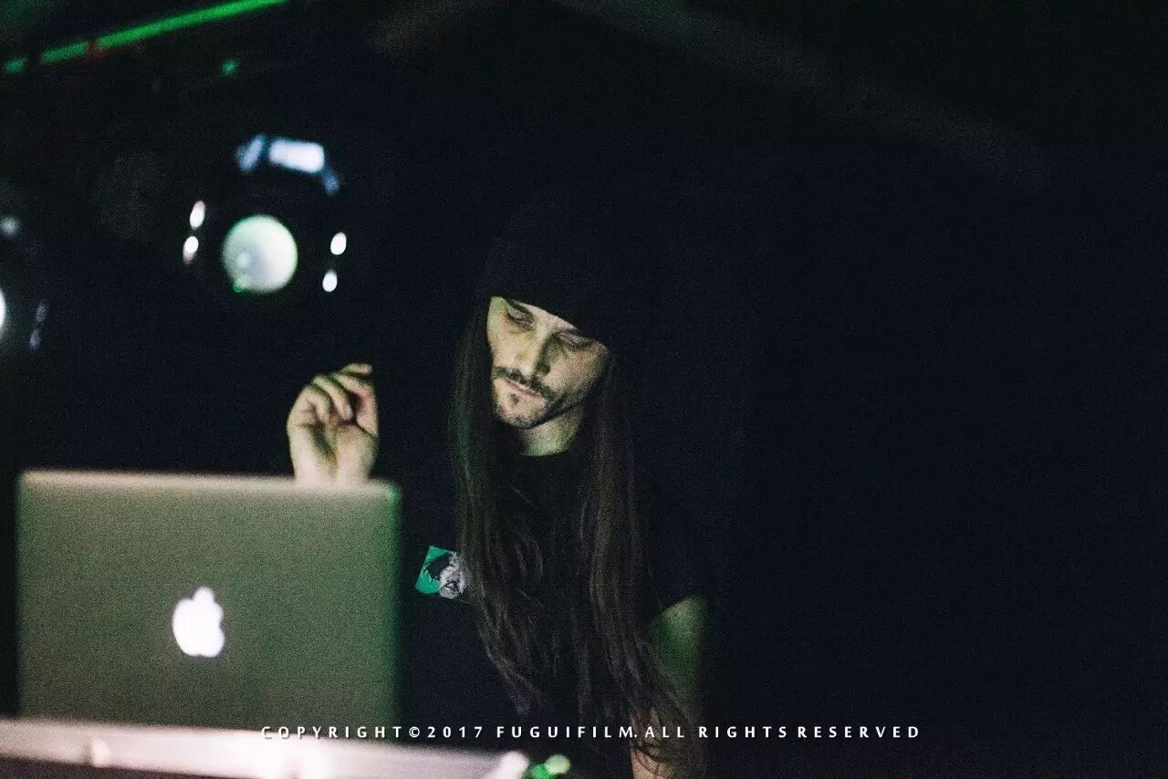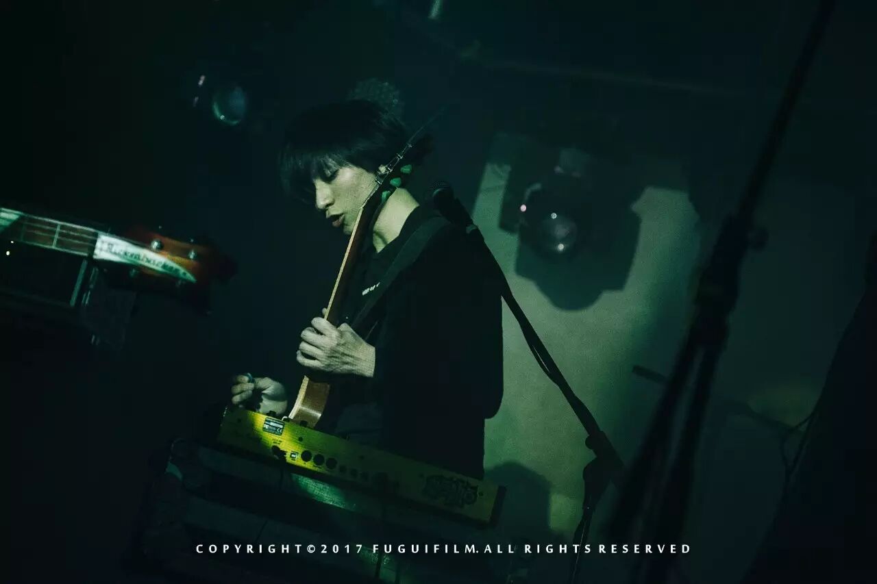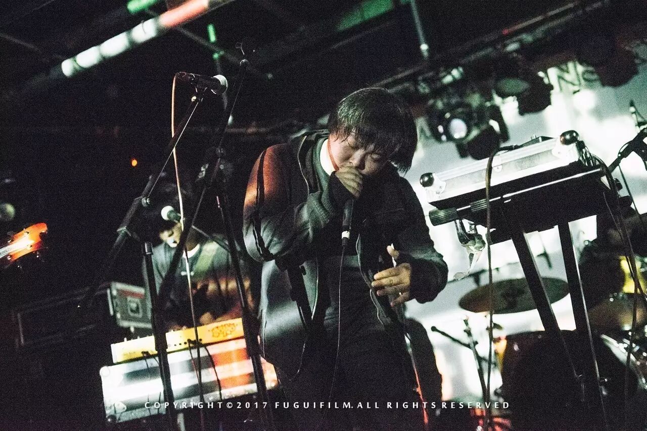 Livehouse 的演出很少准时开始,匆忙按原定时间到达场地,发现还没多少观众,门口站着些零落的人正在闲聊、抽烟。直到场地经理喊了一声“演出要开始了”,外面的人才纷纷进场。灯光晦暗,我看不清周围人的样子。舞台上除了常见的鼓、吉他、贝斯外,还被电脑、键盘、合成器、效果器等塞得满满当当,主唱的面前还有两个话筒。演出没有嘉宾,乐队六个人穿着黑色衣服,直接出现在我眼前。