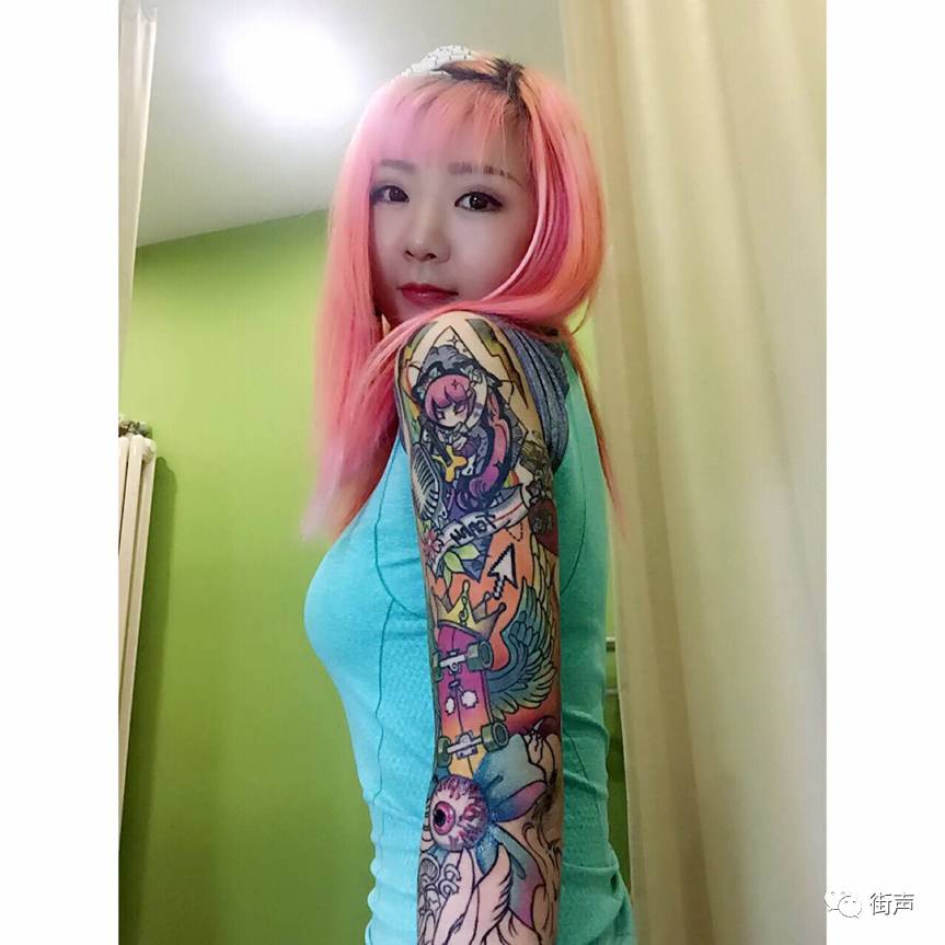 小时候看杂志上一双马尾姑娘纹了个花臂,觉得特别酷。去年生日的时候我就去朋友那儿在右臂纹了一堆纹身。