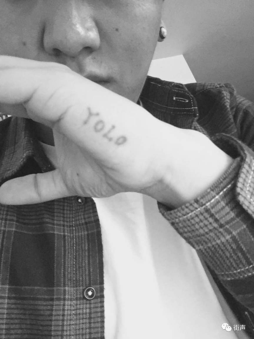 第一次纹是二十一岁生日的时候妈妈陪我纹的,看过《歌舞青春》以后我特别喜欢 Zac Afron,看他在右手纹了个“YOLO”,我也就学他在左手纹了个一样的。有一个女粉丝,应该很喜欢我吧,也学我纹了个 YOLO,可是,纹身师傅把“L”下面那一横纹反了!变成了“YO」O”她发微博@我,看到以后把我笑惨了。