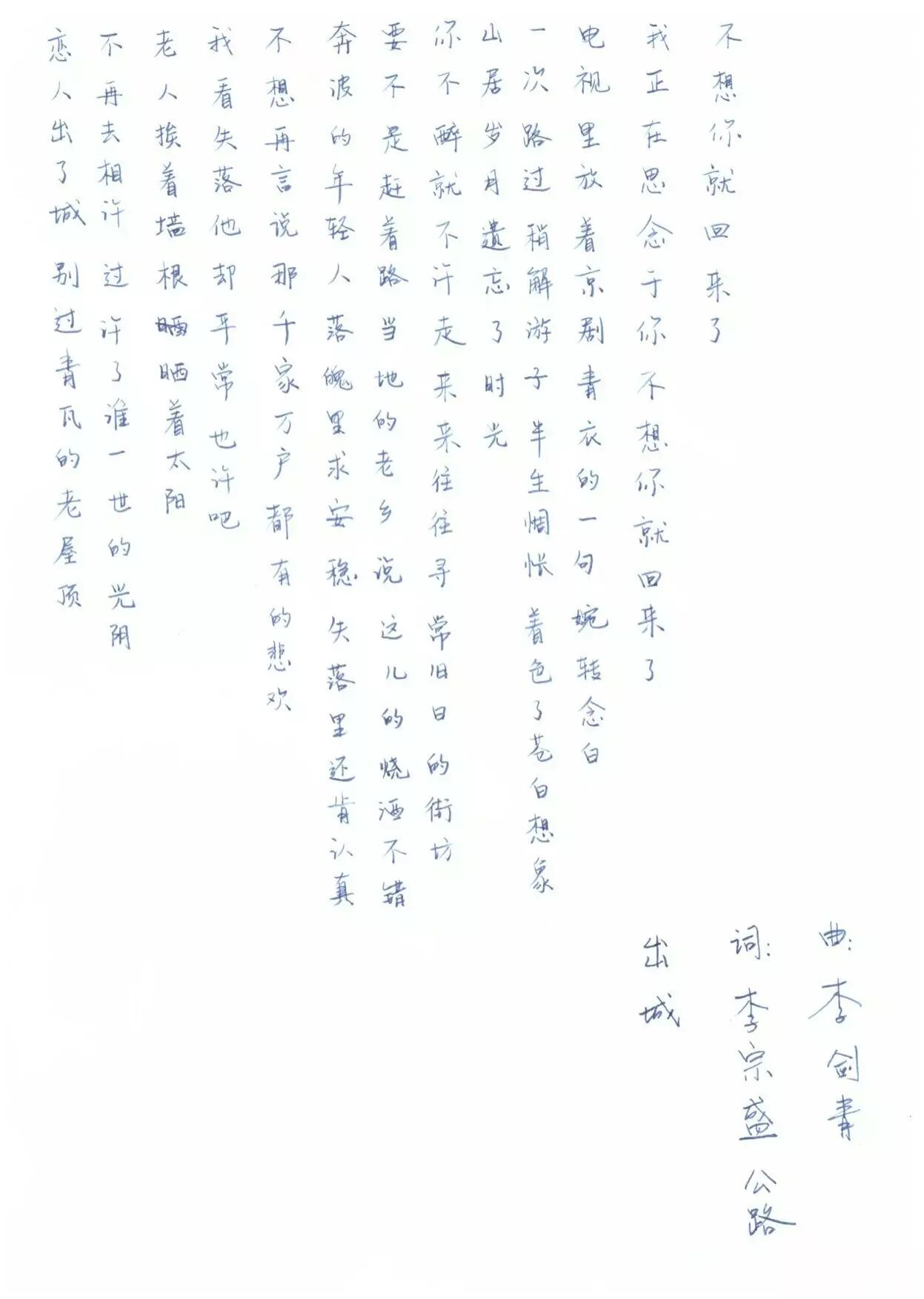 “街声大事”独家得到了李剑青誊写的歌词,特此发布。