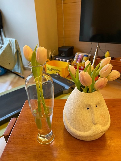 最近我们在研究听别人的音乐,然后对应到自己玩过的游戏画面,再看着这些游戏画面重构音乐。我很热衷为生活创造一些小仪式。这一个月以来,我录了一些类似下课铃的提示音,到点就会在家里响起,提醒现在是音乐时间、游戏时间或电视时间。音乐时间是设定在上午11点和下午5点;男朋友有个单独的游戏时间是下午3点;我们一起的游戏时间是晚上的8点。天气特别好时,我们会走远一点去散步,比如最近去了中山公园,吃了冬菜包子。