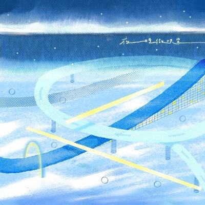 八千代:我们给了设计师duooopin一些意向上的构思,比如想要一些高架桥交错的画面,然后剩下都是她自己发挥的。只不过大家好像对画面中元素的理解都不太一样,就像我觉得这个背景的蓝色是海岸,搭配一些高架路,但是李宗羊就会觉得它更像一个海底游乐园。