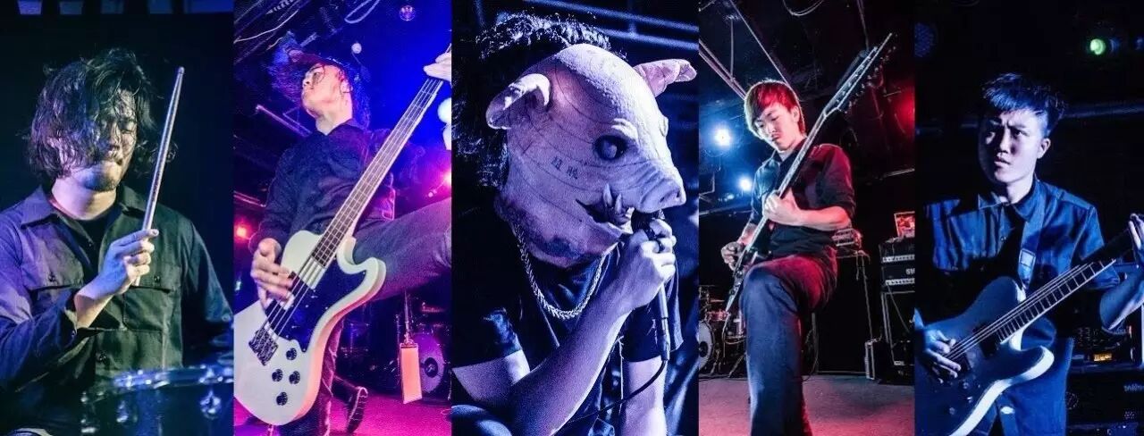 放到任何一个音乐节,血肉果汁机都是一支很好认的乐队,主唱全程戴着一个猪头面具,凶猛的金属嗓,唱闽南语歌词。