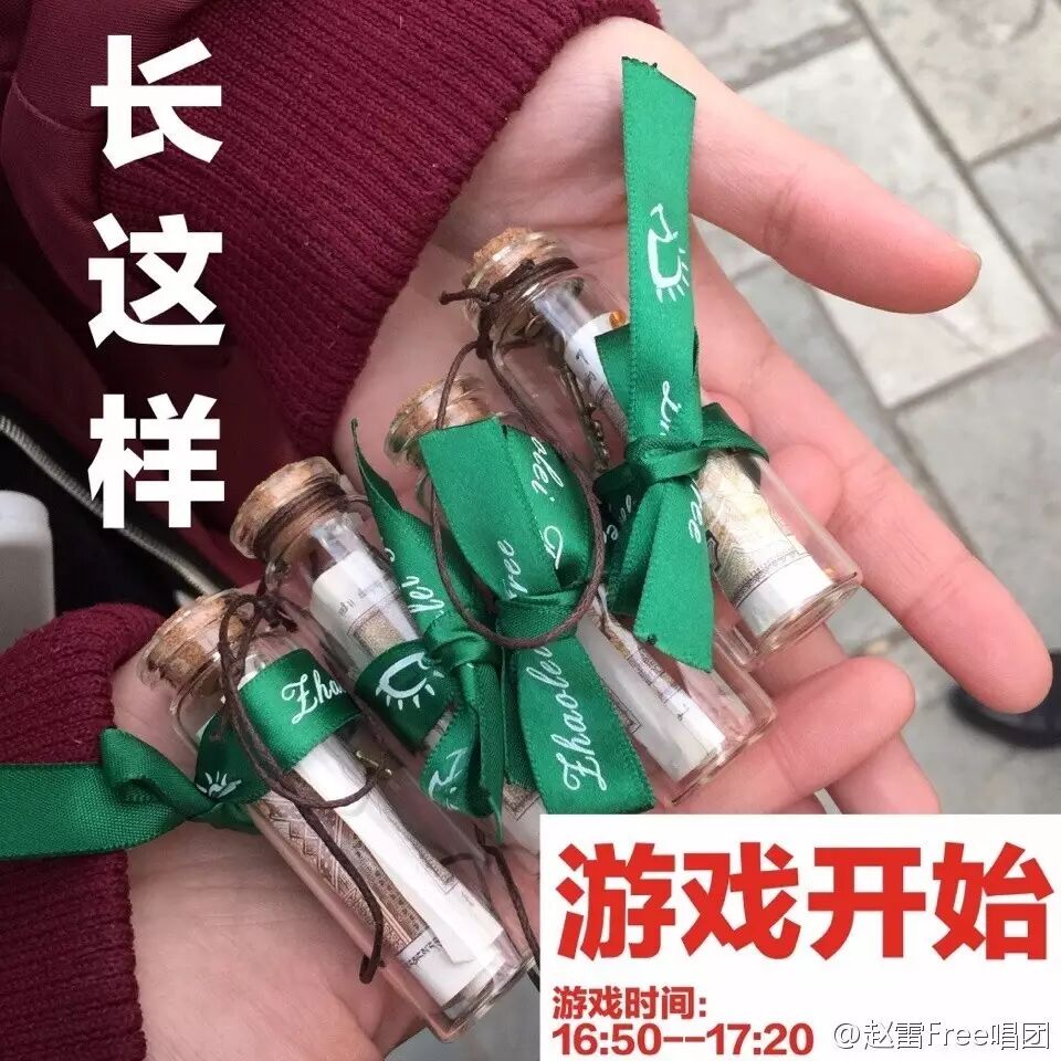 北京站我们策划了一个“礼物躲猫儿”的活动,大致内容是,我们准备了十份左右精心制作的礼物,将它们按一角钱人民币的编号来分配,再将这些编了号的一角钱纸币放在小瓶子中,提前布置在会场周围“路人不易发现但找寻者容易发现”的小角落里,大家找到了小瓶便拿来找我们兑换礼物即可。反响很不错,看到大家拆开礼物的刹那,我们的内心还是很澎湃的。