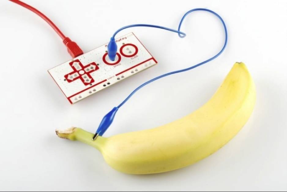 把香蕉跟电脑连起来,这个看似神经病的行为背后的原因是这样的,Makey Makey 可以把任何导体以及湿润的绝缘体,变成计算机输入设备(别问我怎么知道香蕉是导体的,考验各位初中物理课有没有睡觉的时刻到了)。