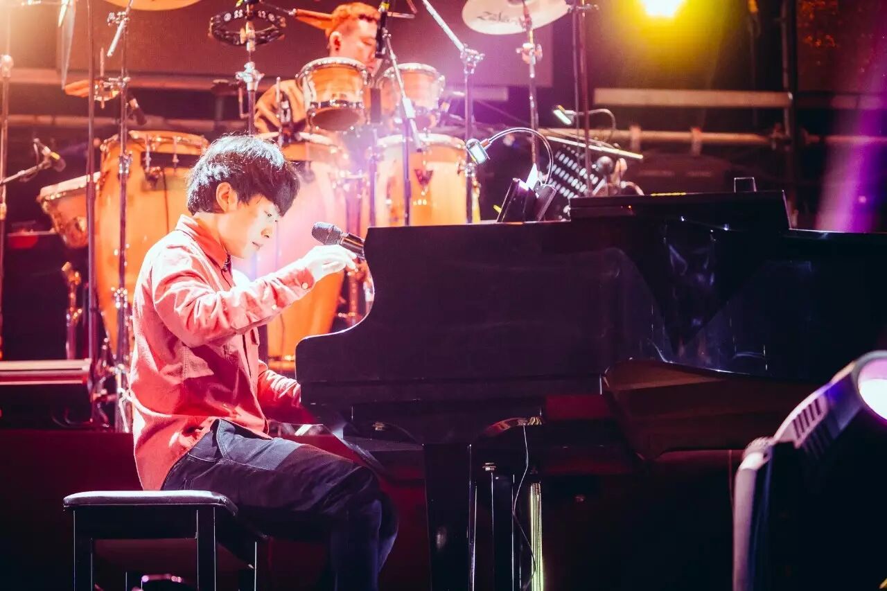 《画》和《家乡》大合唱后,灯光调暗,舞台上一左一右的打击乐手和鼓手开始互飚起SOLO。台下光听不过瘾,鼓手大力拍手,带动观众随鼓击拍掌、欢呼、吹口哨,如此持续两分钟,观众情绪逐渐被撩拨至高处时,一声悠扬笛声横空出世,随后乐器齐奏,光影炫目。《我们的时光》这首歌,经过层层铺垫终于抵达耳膜,更是畅快到像是直接飞去厦门,湿热海风扑面而来。