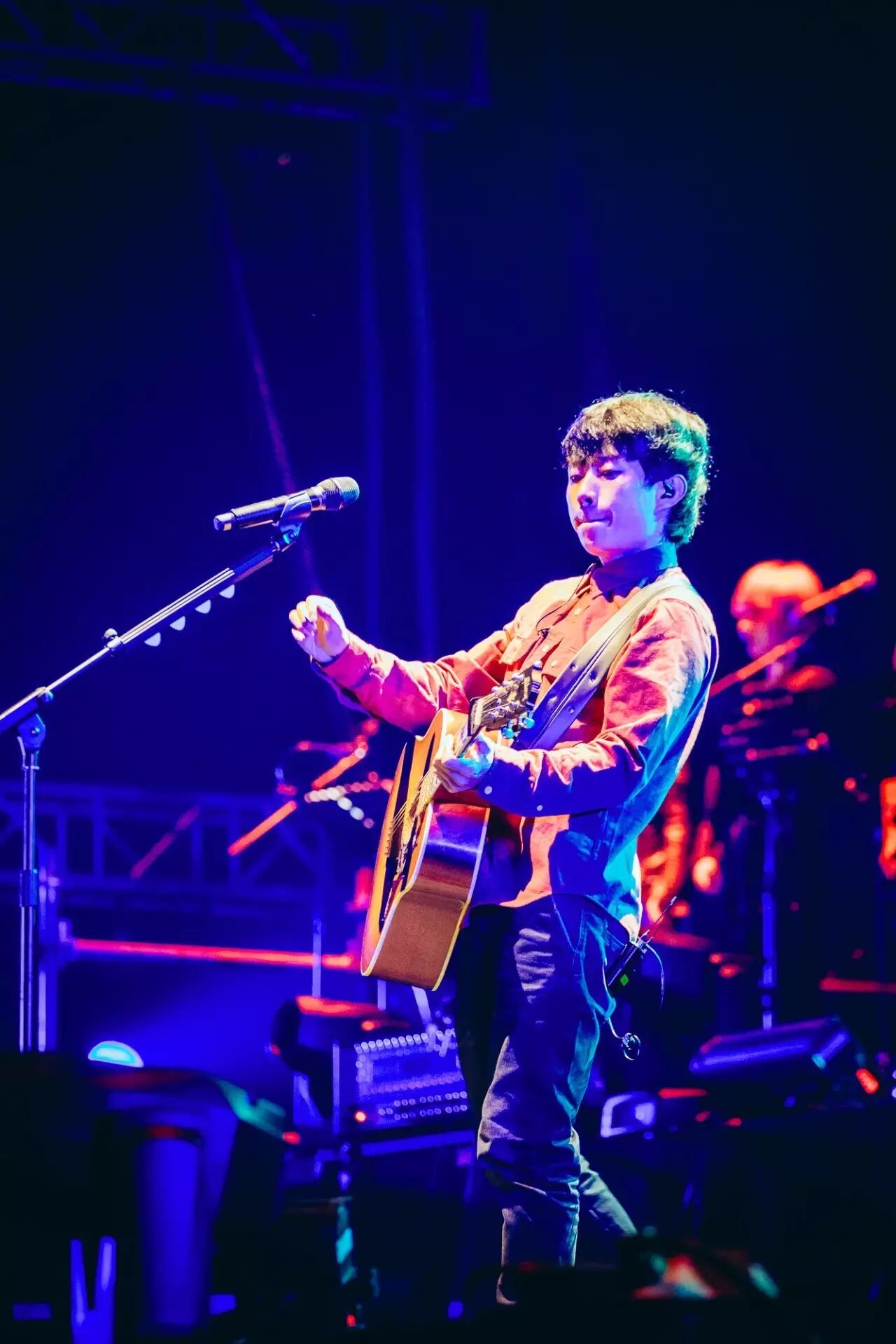 简洁的服装,昂起头唱歌,来到大场馆,还是那个专注唱歌的赵雷