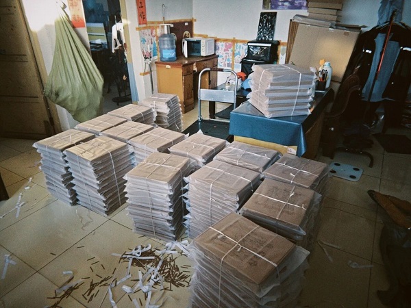 李烦:在地下室的桌子上写的,像写作业一样的。
