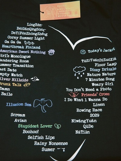 因为马上坏甜心要六周年了,这次送T恤的活动好像是我们唯一能为大家做的事情。虽然可能比我们预想的参与人数要多很多,但是没关系,至少这件事结束之后,那些不知道要不要看我们的人,在小红书上看到的基本都是这轮巡演乐迷们很认真写出的反馈。我觉得这样至少能让大家很期待,当然我们的观众很给面子,开始觉得歌单是不是太长了会让人无聊,现在看好像“真值”!