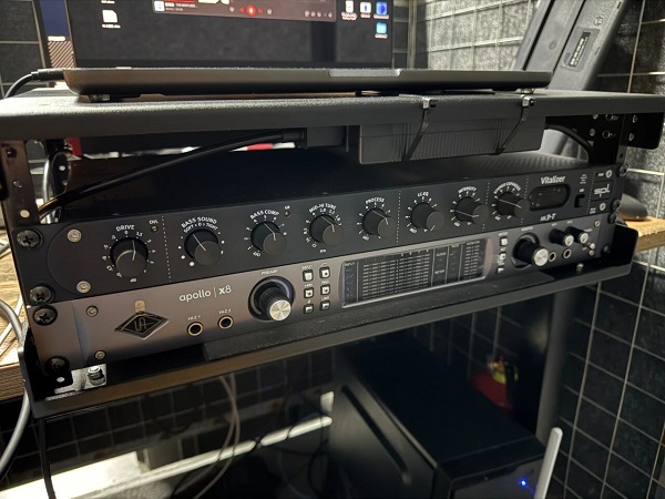 调音师 詹金青:硬体上最大的变化是自己带了机架式的调音台,带了 Apollo 声卡和一台母线硬件设备以及一些必要的话筒。如此的设置,首先是为了能有一个可以存着带走的调音台参数存档,保证耳返里的内容比例是在一场一场完善,而不是每换一个场地、换一个调音台就又从零开始发送,也影响试音效率也影响返听质量。返听稳定了才能给演出状态一个基础的保障。