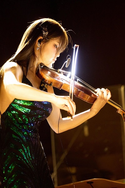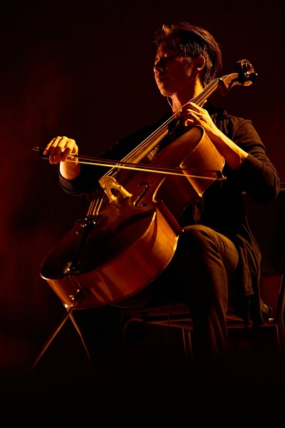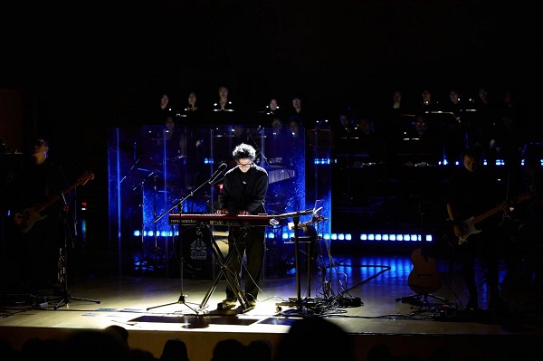 第一章节由主创李星宇和两位提琴手带来。灯光亮了又暗下去,李星宇键盘旁边的电脑屏幕成为了黑暗中的唯一光源。静静调试音准后,小提琴的声音慢慢出现,由弱渐强,随之大提琴与钢琴的加入让表演更加丰满。《最初的爱情》作为开场,三重奏的部分直到《左岸》进入尾声。灯光配合打下蓝色的光束,由一变多,地面瞬间变成海底的星星点点,以中心为轴旋转,音符跳起舞来,整个舞台像是海洋深处的旋转木马。