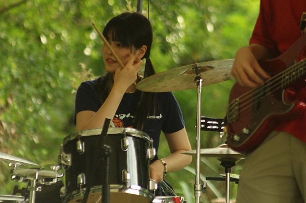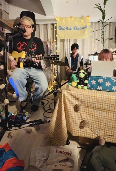Ventura:这个计划虽然是我和洋洋先开始的,但一直觉得缺个鼓手。啊茶很喜欢 Quite Quiet,我虽然之前没听过他们,但这种风格的音乐也是我想玩的。后来看完 Quite Quiet 的演出我就问啊茶要不要做鼓手,因为我当时谁也不认识,没想到她很爽快就答应了。然后就叫洋洋马上去问排练房的时间。