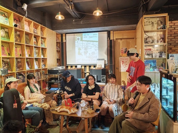 啊茶:2025年国际唱片店日,萤石唱片在广州臻音堂举办了一次分享活动,分享开始前台上还有一个空位,问台下观众有没有人要上来一起聊天,Ven立刻举手说他要,然后就认识了。洋洋是友队 IFTYAY的贝斯手,认识好多年了。