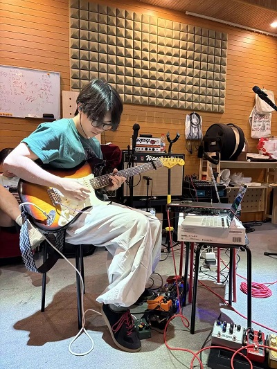 这些都是我对 indie 的启蒙。大学开始弹电吉他,开始更广泛地接触 indie 乐队。有一个特别特别火的叫 Men I Trust,2019年我刚听到的时候就非常非常喜欢。还有 Loving,他们把过载和一些周边效果可以用得非常好。还有一些台湾地区的音乐人,像缓缓HuanHuan、斑斑林以乐、闪闪闪闪等等。