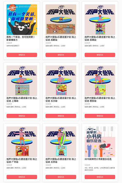 从2017年开始,街声大登陆每年都在坚持着征选+演出+合辑的模式,年轻的音乐人初次登上livehouse的舞台,一些人走进都市生活场景,参与简单村小书房、卧室爆发力等线下活动。还有一些人顺利登上简单生活节,或是参与综艺,走上荧屏,让更多人听到了自己的声音。